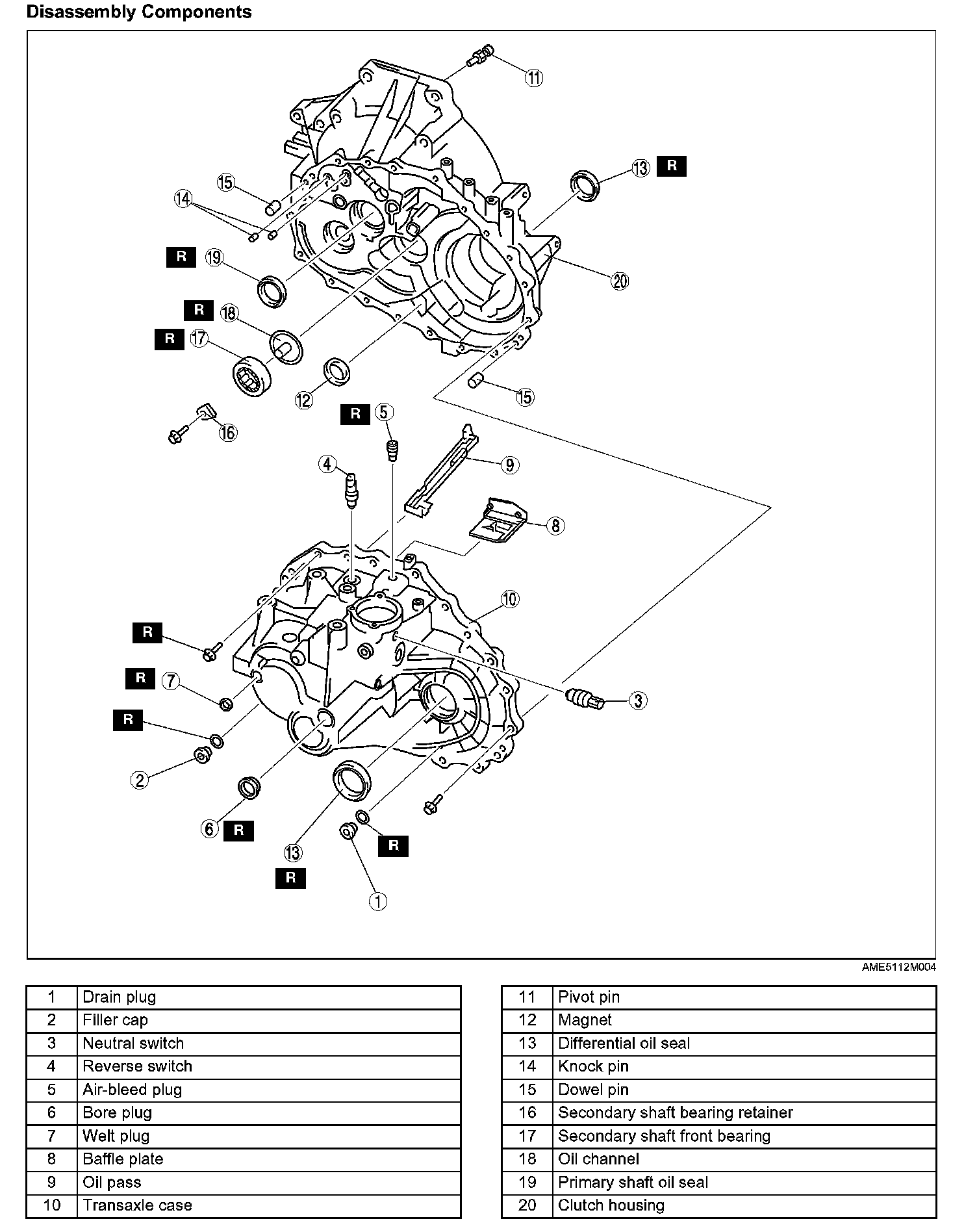 Clutch Housing and Transaxle Case Components Disassembly (Part 1):