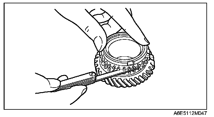 3. Measure the clearance between the synchronizer ring and the side of gear circumferentially using a feeler gauge.