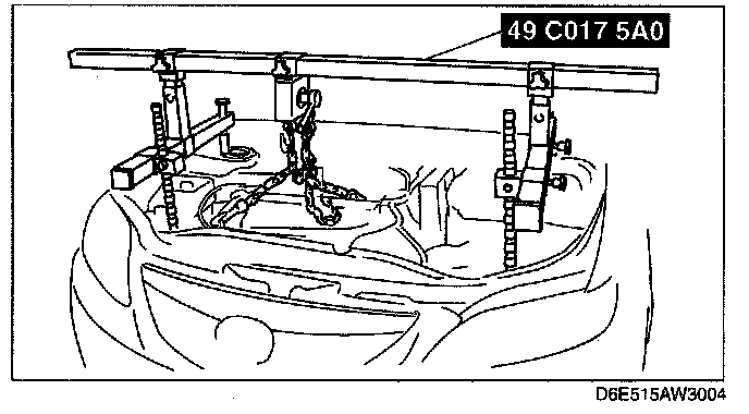3. Adjust the SST (49 C017 5A0) so that the engine is located at the specified position.