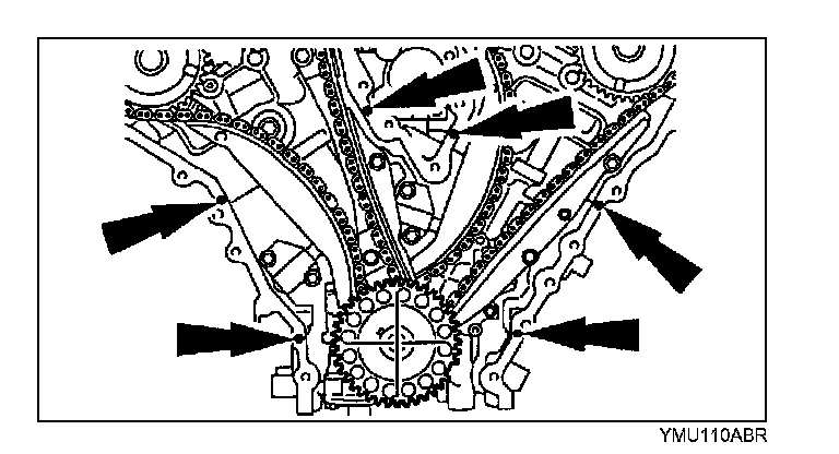 Engine Front Cover Assembly Note1. Apply a 6 mm (0.24 in) dot of silicon sealant as indicated in the figure (mating faces).