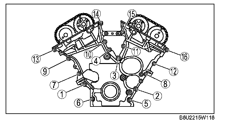 2. Tighten the bolts and studs in the order indicated in the figure.