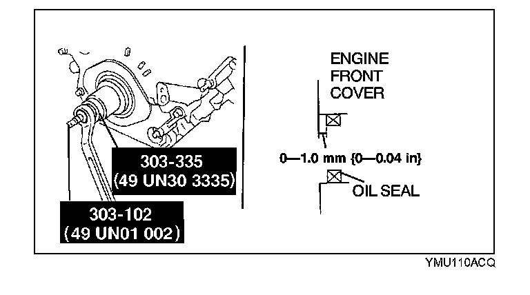 3. Assemble the front oil seal using part A of the SST [303-335 (49 UN30 3335)] and the SST [303-102 (49 UN01 002)] in the following order.