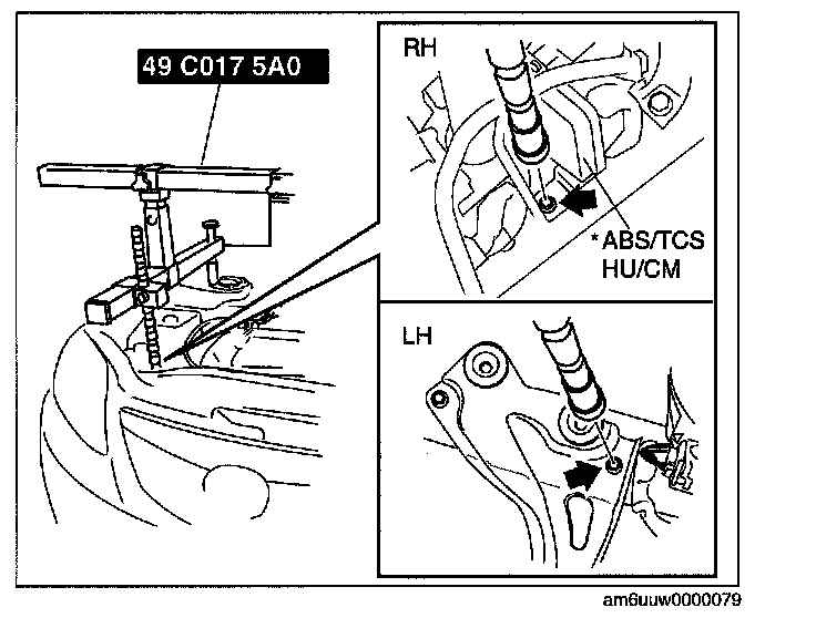 ^ When setting the SST on the right side, make sure it doesn't interfere with the ABS (ABS/TCS) HU/CM or the DSC HU/CM.