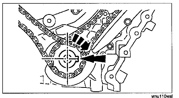 2. Place alignment marks on the timing chain corresponding to each of the alignment marks on the timing sprocket.