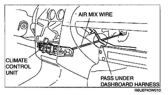 1. Pass air mix wire through the following routes then connect to A/C unit. (Manual air conditioner)