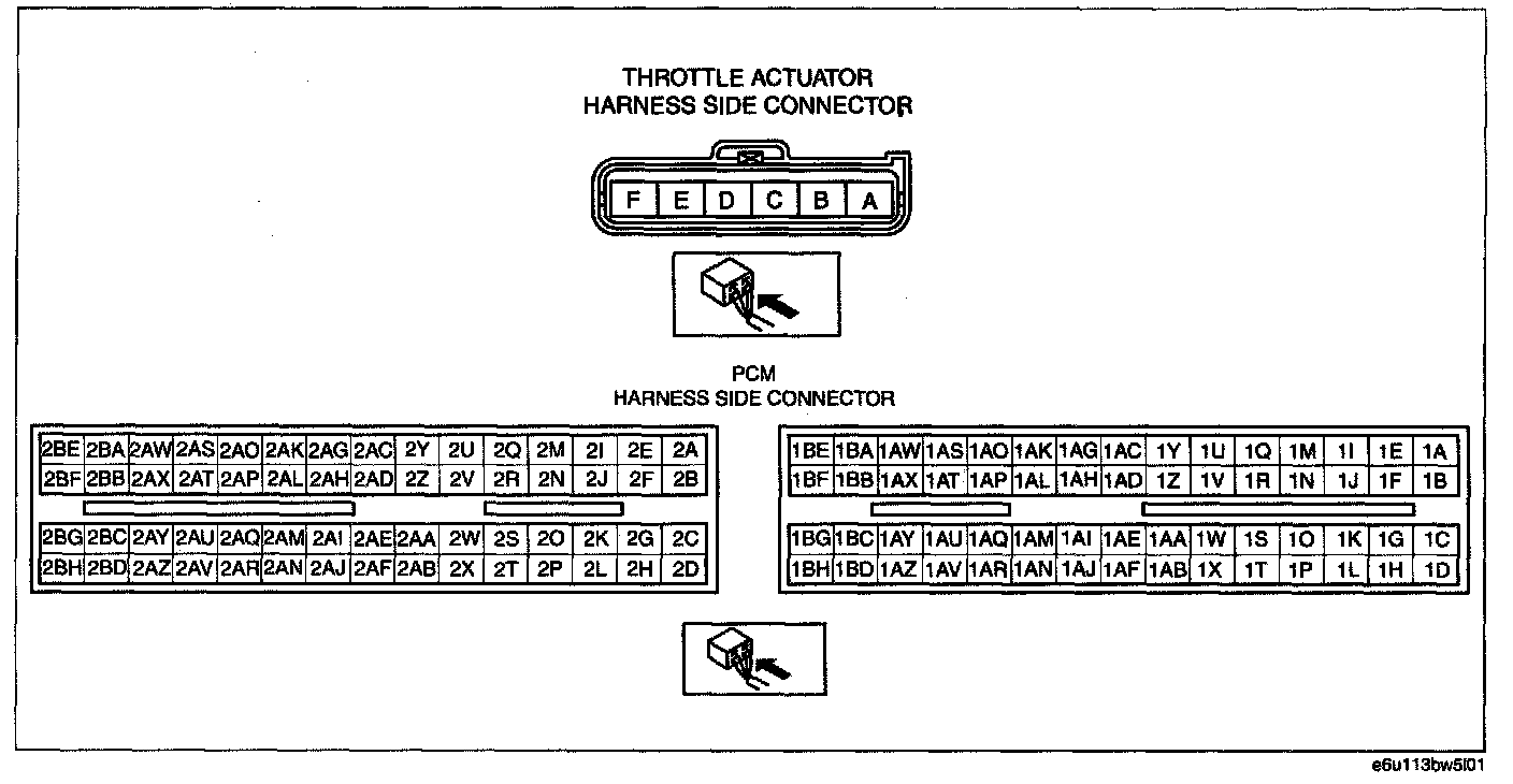 - Throttle actuator terminal B and PCM terminal 2A