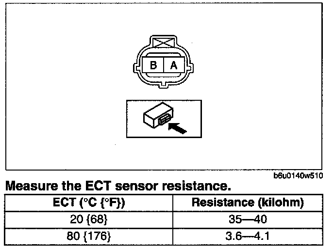 - If not as specified, replace the ECT sensor.