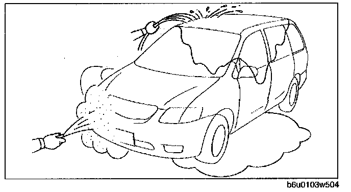 5. Spray water onto the vehicle or run it through a car wash.