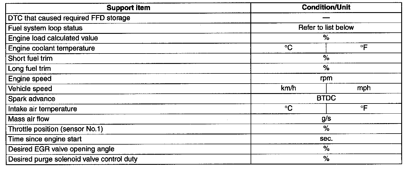 NOTE: FFD is a snapshot of the conditions that are present when DTC or PENDING CODE is stored. Once FFD is stored, this data will remain in PCM memory even if another emission related DTC or PENDING CODE is stored additionally, except for Misfire or Fuel System related DTC or PENDING CODE. Once Misfire or Fuel System related DTC or PENDING CODE is stored, it will overwrite any previous data and the FFD will not be further overwritten. When DTC associated with the FFD is erased or PCM is reset, new FFD can be stored.