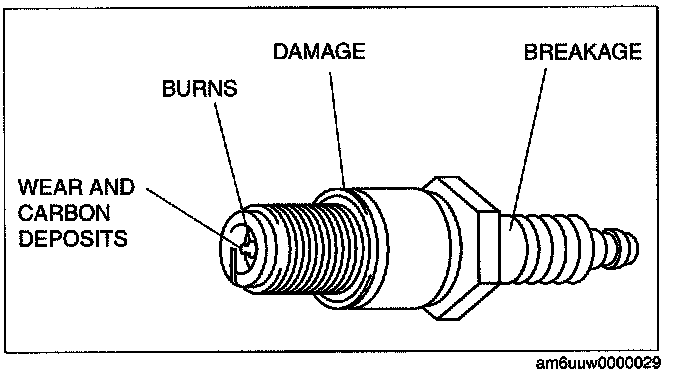 - If any of the following malfunctions are indicated, replace the spark plug.