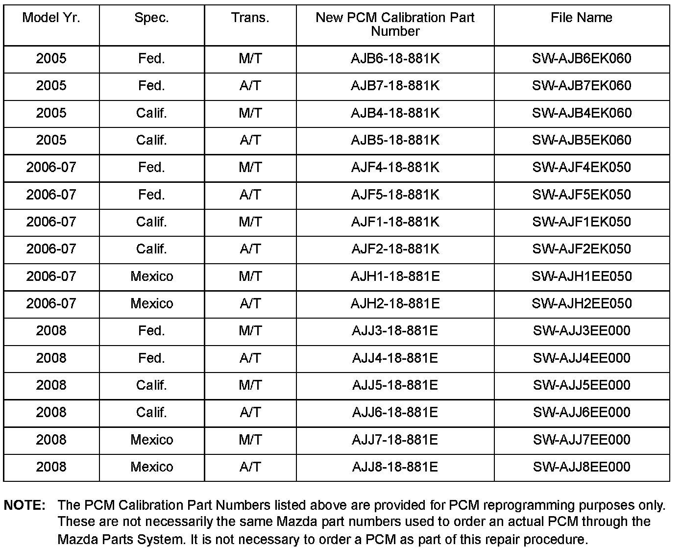 ^ Please be aware that PCM calibration part numbers and file names listed in any Service Bulletin may change due to future releases of IDS software, and additional revisions made to those calibrations for service related concerns.