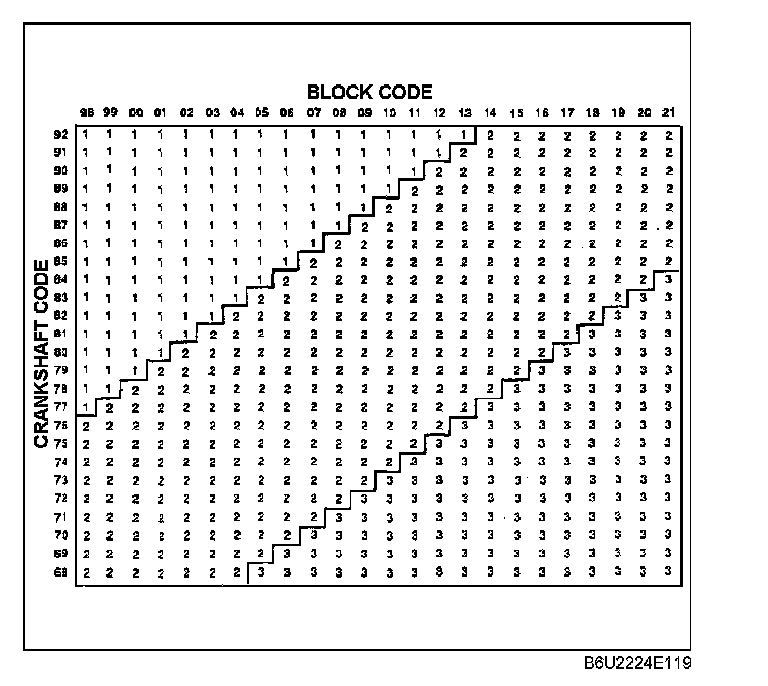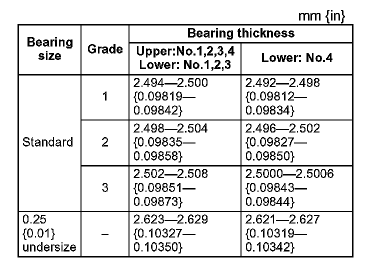 Main bearing selection table