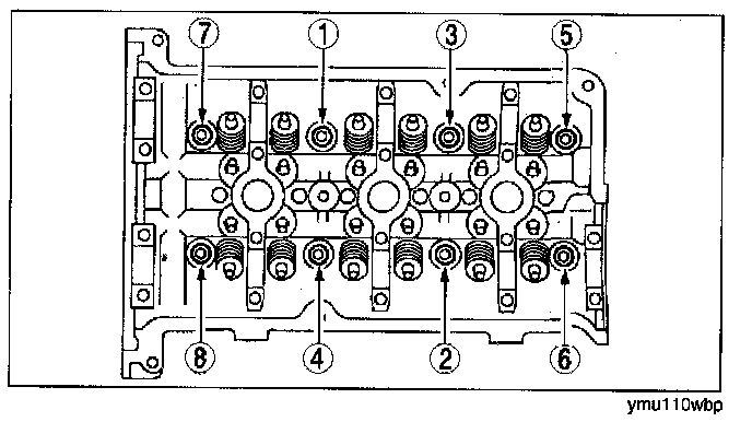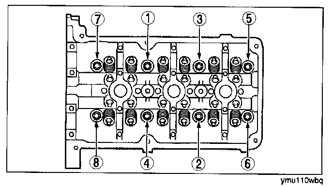 Tighten the cylinder head bolts in the order shown using the following 6 steps.