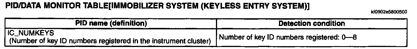 PID/Data Monitor Table[Immobilizer System(Keyless Entry System)]: