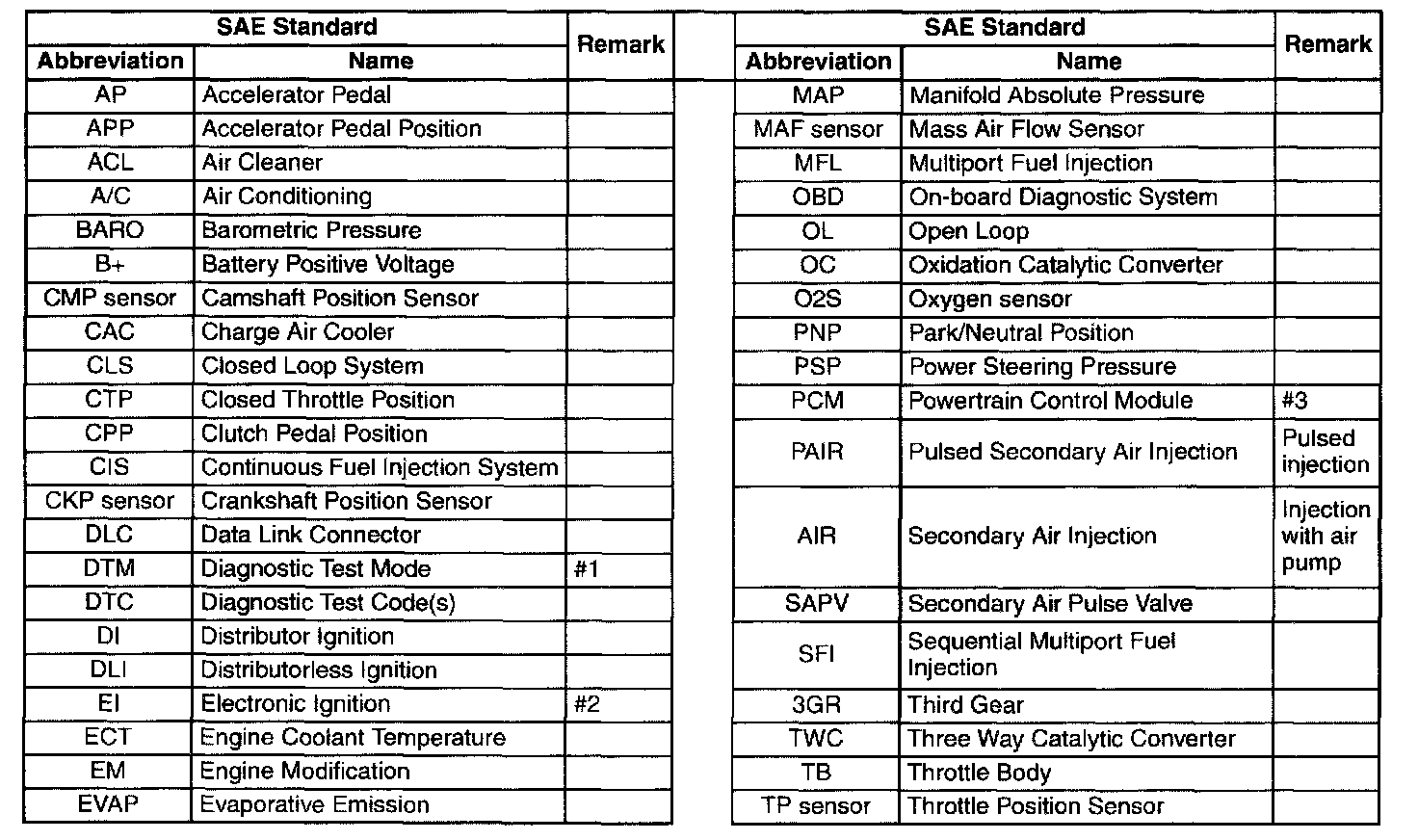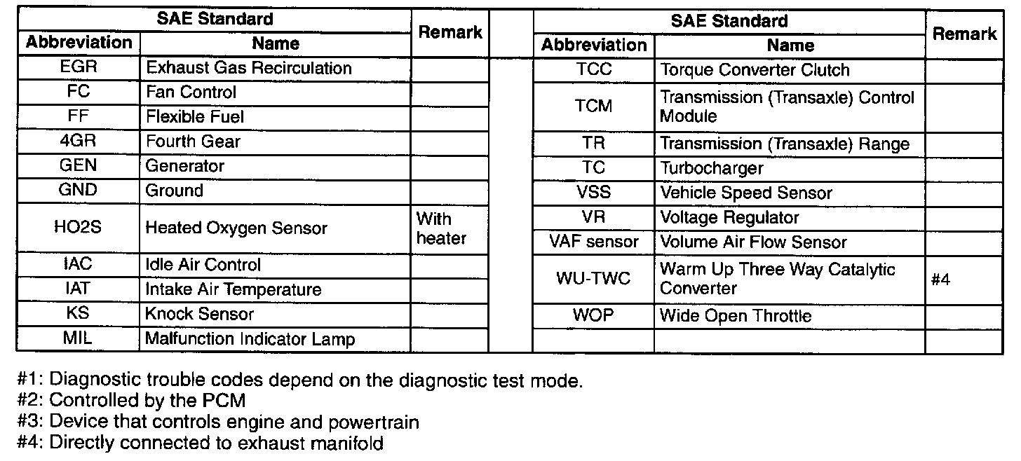 - In accordance with new regulations, SAE (Society of Automotive Engineers) standard names and abbreviations are now used in this manual. The table given lists the names and abbreviations that have been used in Mazda manuals up to now and their SAE equivalents.