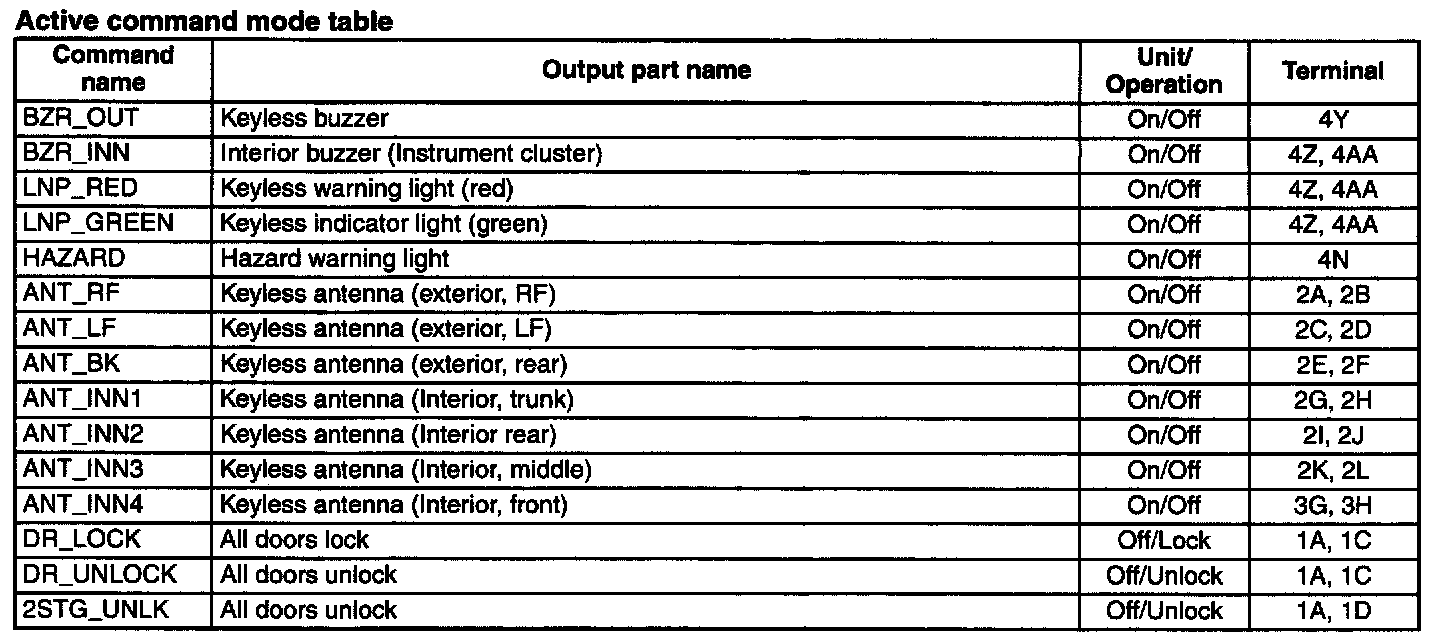 Active Command Mode Table: