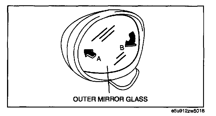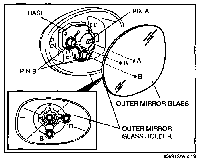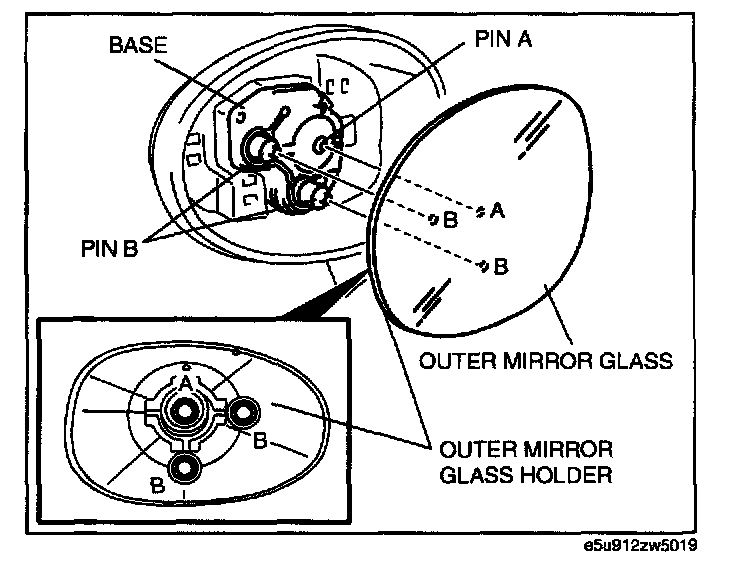 2. Detach pin A while lifting up the inside of the outer mirror glass holder.