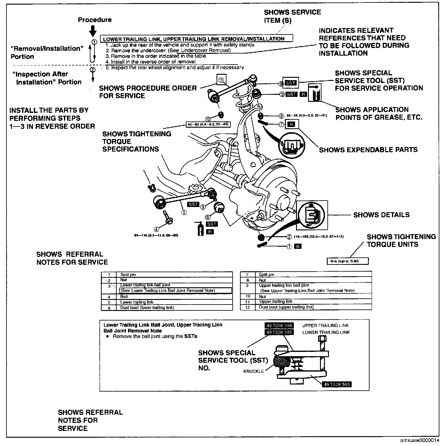 - Simple operations which can be performed easily just by looking at the vehicle (i.e., removal/installation of parts, jacking, vehicle lifting, cleaning of parts, and visual inspection) have been omitted.