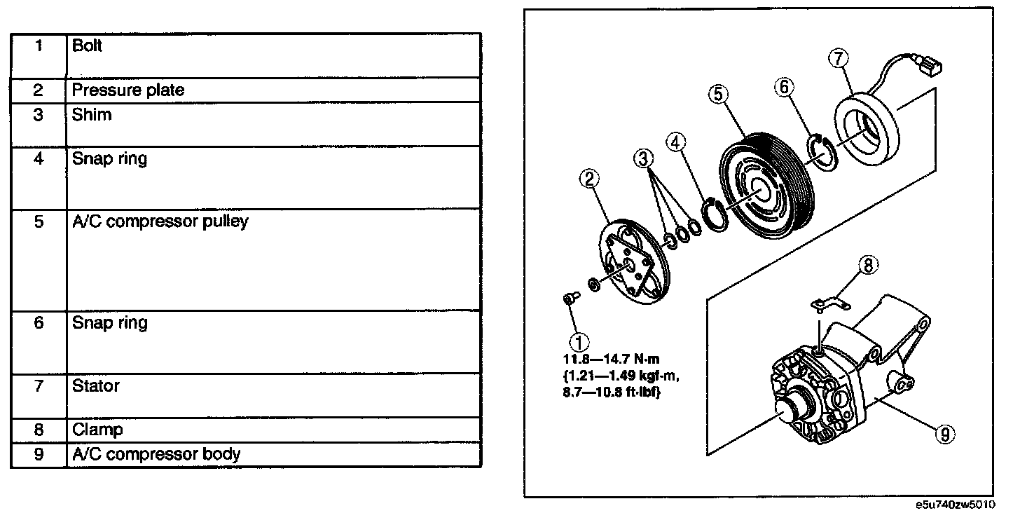 MAGNETIC CLUTCH DISASSEMBLY/ASSEMBLY1. Disassemble in the order indicated in the table.