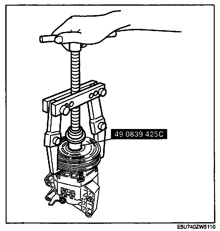1. Remove the A/C compressor pulley using the SST (49 0839 425C).
