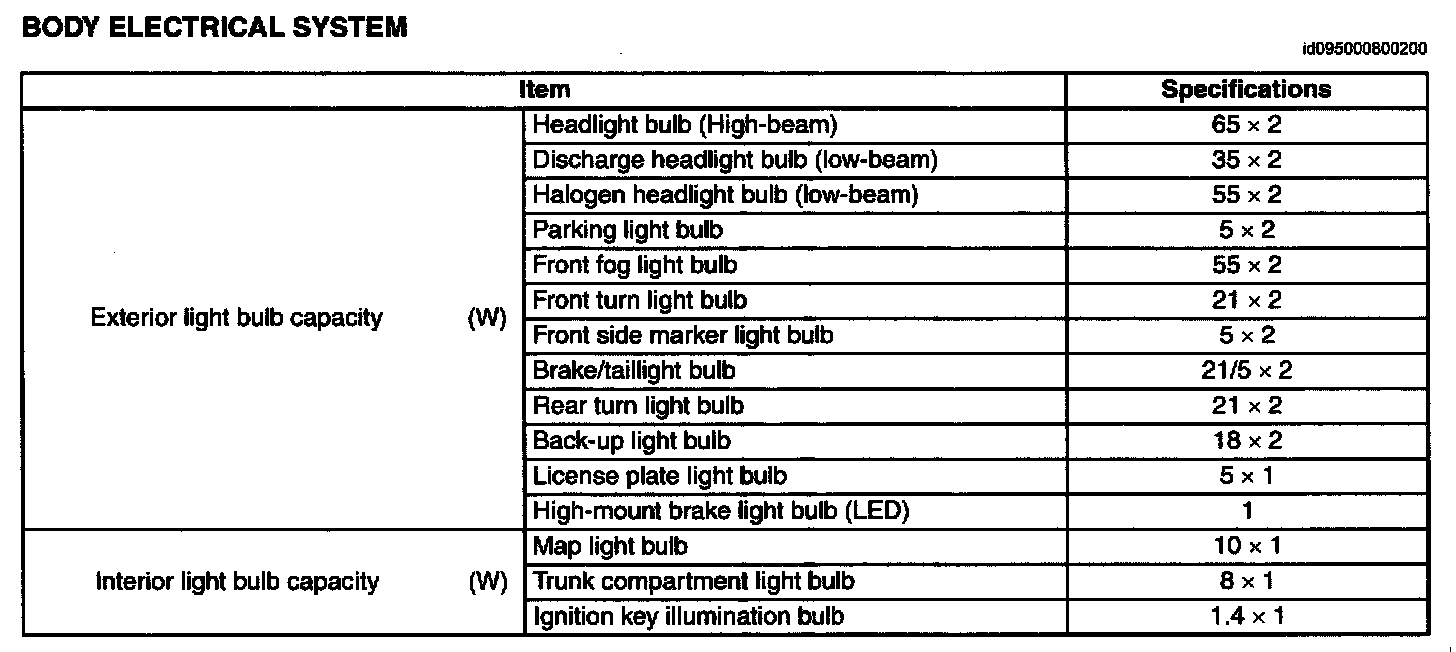 Lighting and Horns: Specifications
