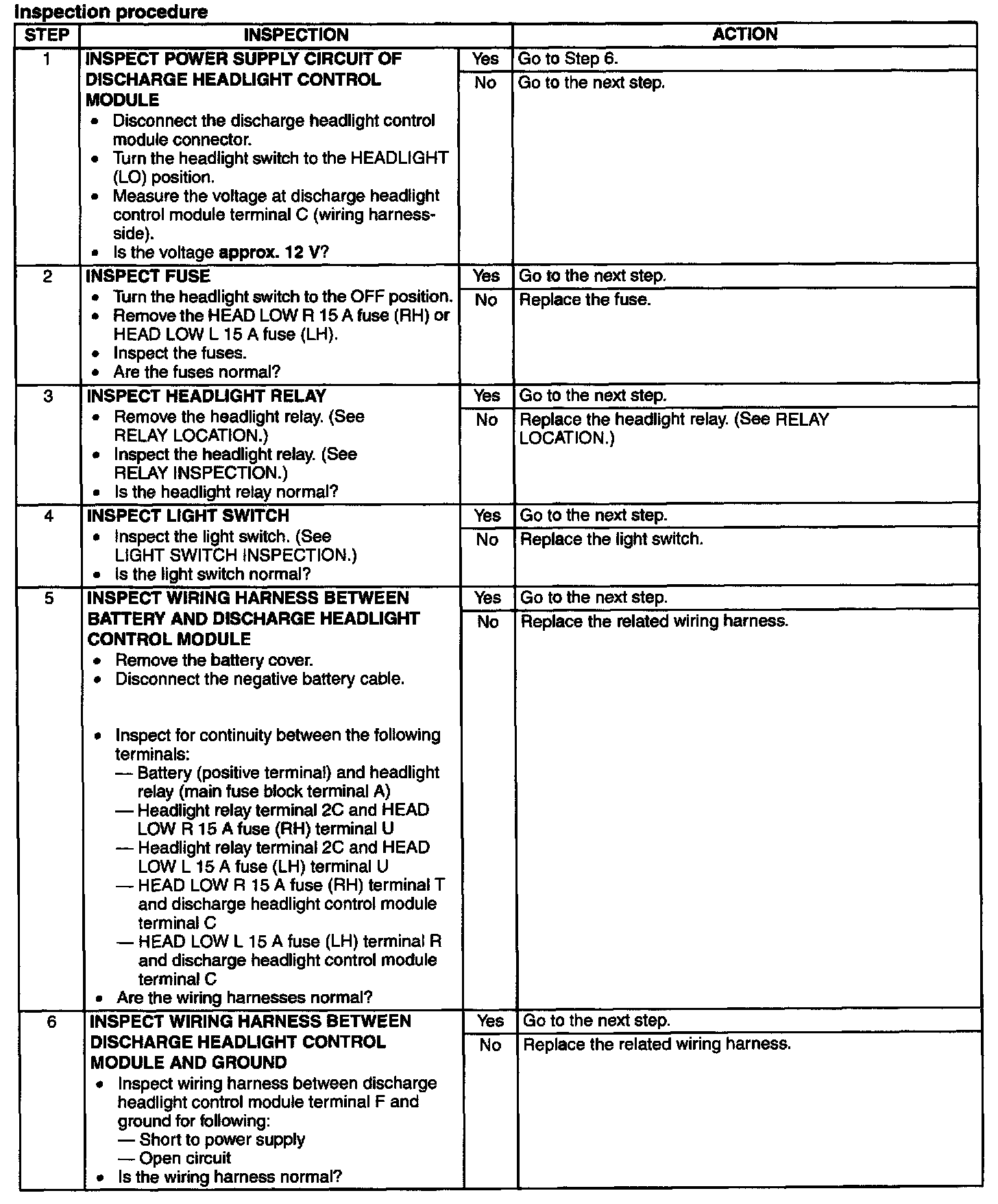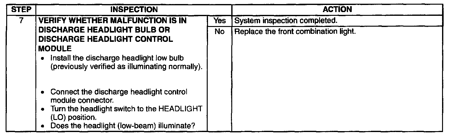DISCHARGE HEADLIGHT SYSTEM INSPECTIONDischarge headlight inoperative