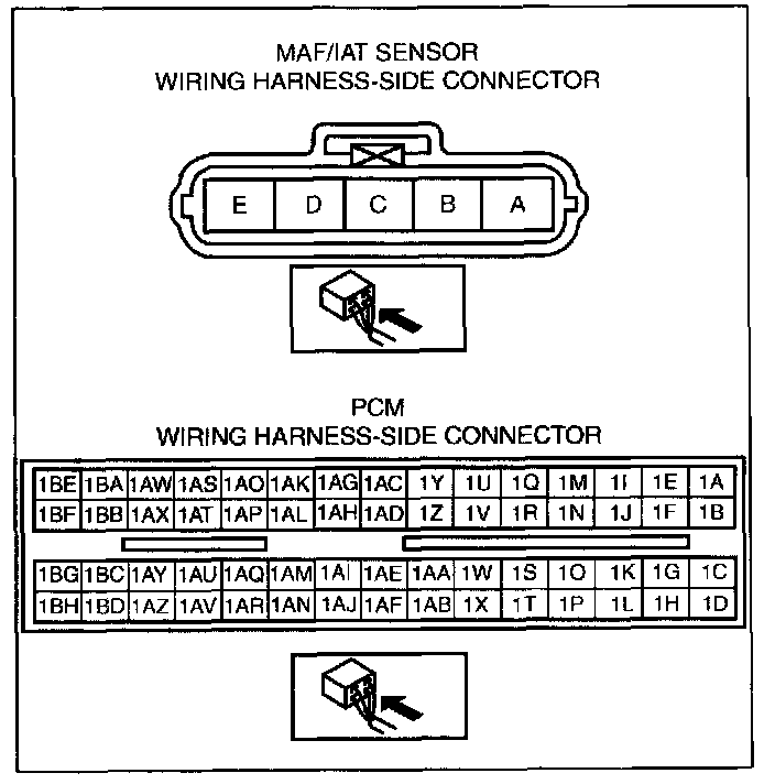 - MAF/IAT sensor terminal B and PCM terminal 1P