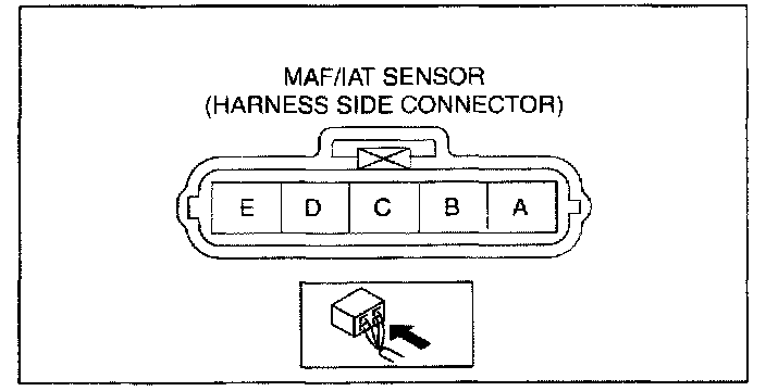 4. Verify that the resistance between MAF/IAT sensor terminals D and E is within the specification.