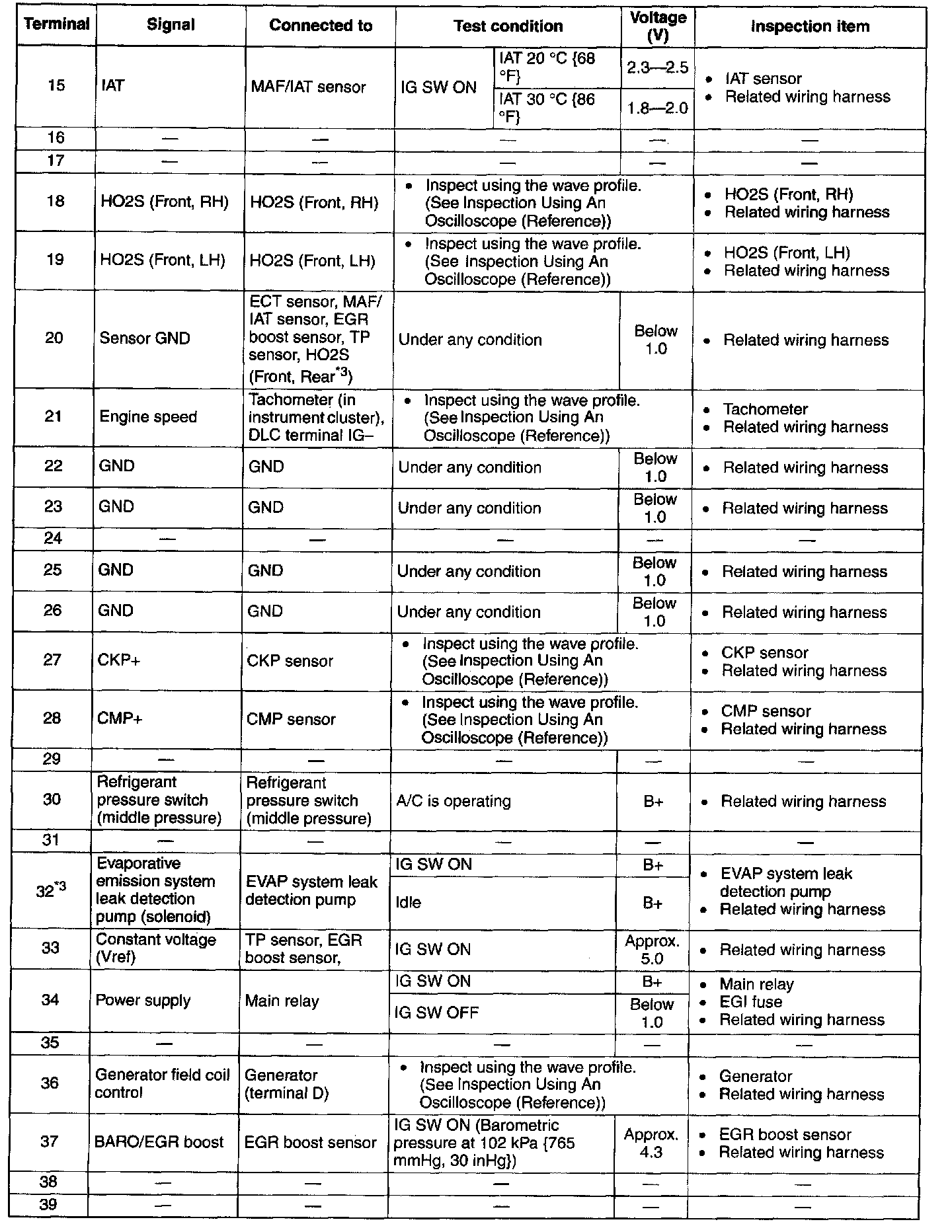 Terminal Voltage Table(Reference) - Terminals (15 - 39):