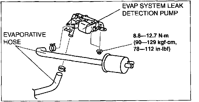 4. Disconnect the evaporative hose from the EVAP system leak detection pump.