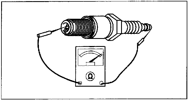 1. Measure the resistance of the spark plug using a tester as shown in the figure.
