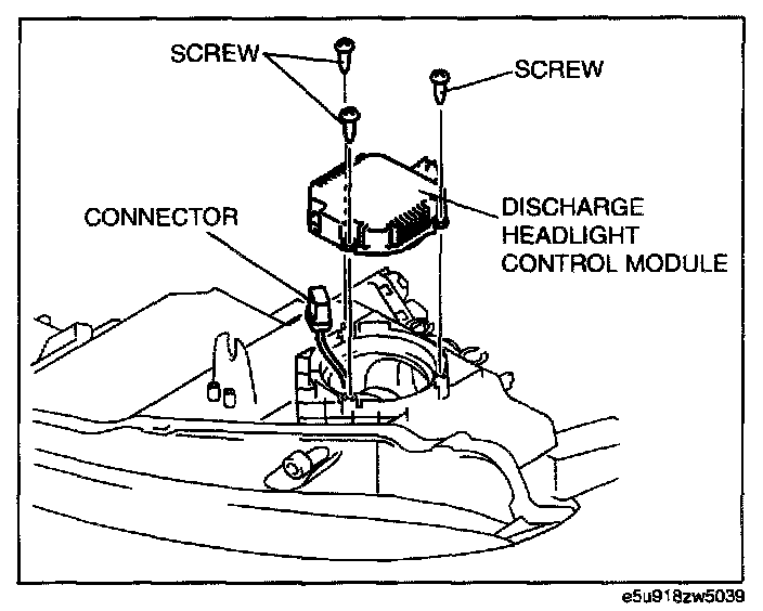 6. Remove the discharge headlight control module.