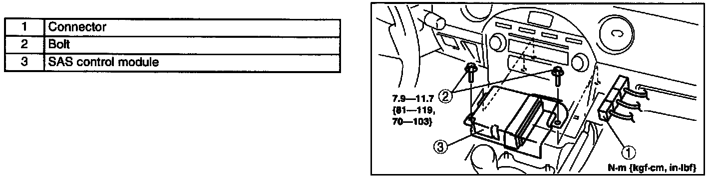 CAUTION: Handling the SAS control module improperly can accidentally deploy the air bag modules and pretensioner seat belt, which may seriously iniure you. If configuration is not completed before removing the SAS control module, DTC B2477 will be displayed.