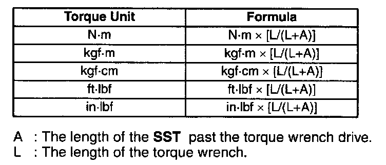 - When using a torque wrench-SST or equivalent combination, the written torque must be recalculated due to the extra length that the SST or equivalent adds to the torque wrench. Recalculate the torque by using the following formulas. Choose the formula that applies to you.