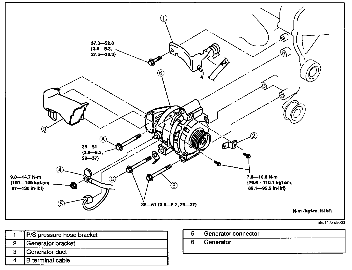 - When the battery cables are connected, touching the vehicle body with generator terminal B will generate sparks. This can cause personal injury, fire, and damage to the electrical components. Always disconnect the battery negative cable before performing the following operation.