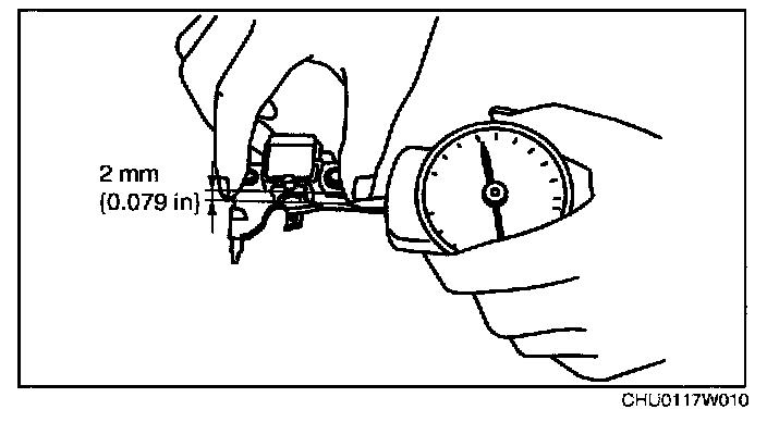 2. Read the spring pressure gauge at the brush tip projection of 2 mm {0.079 in}.