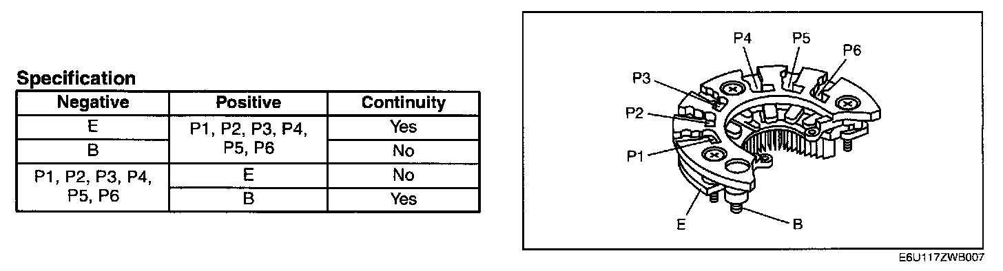 1. Inspect for continuity of the diodes using an analog circuit tester.