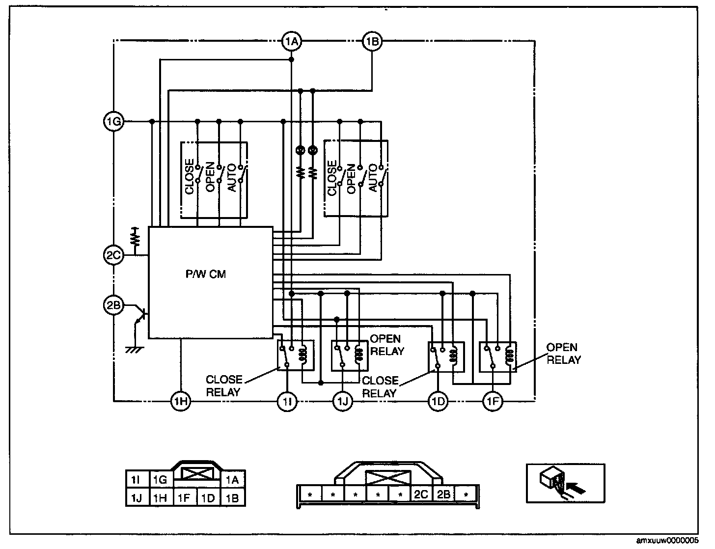 3. Inspect the power window main switch connector for continuity at terminal 1G.