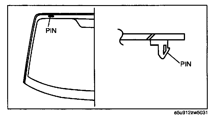 NOTE: Before removing the pin from the windshield glass, place an alignment mark on the windshield.