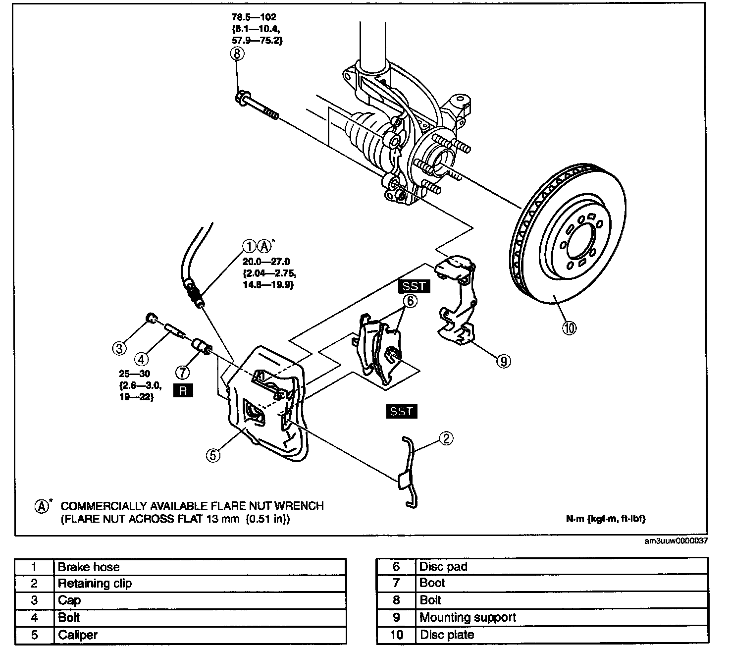 1. Install the brake hose to the caliper.