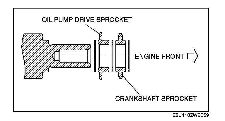 The oil pump drive sprocket has the assembly direction as shown in the figure.