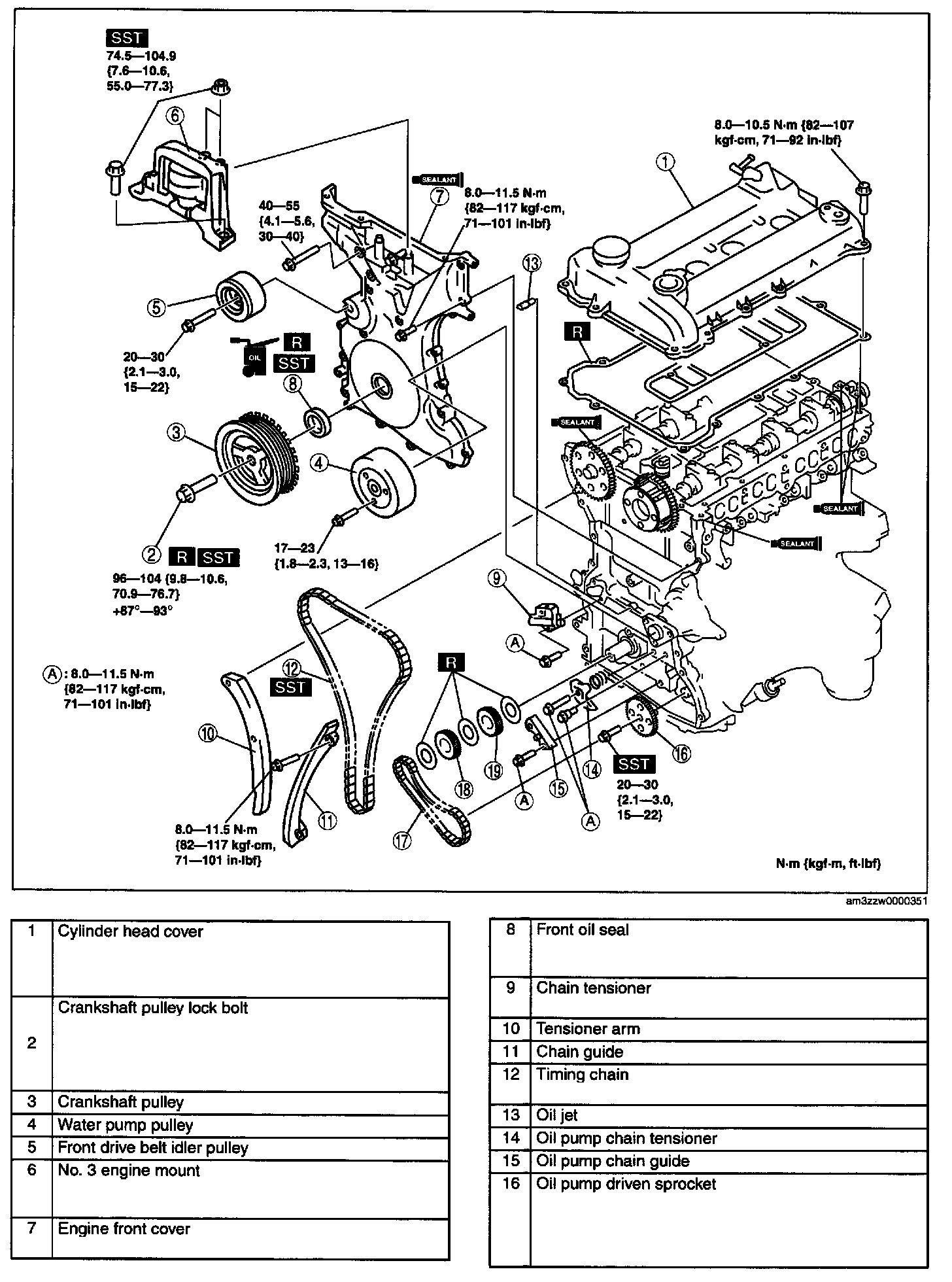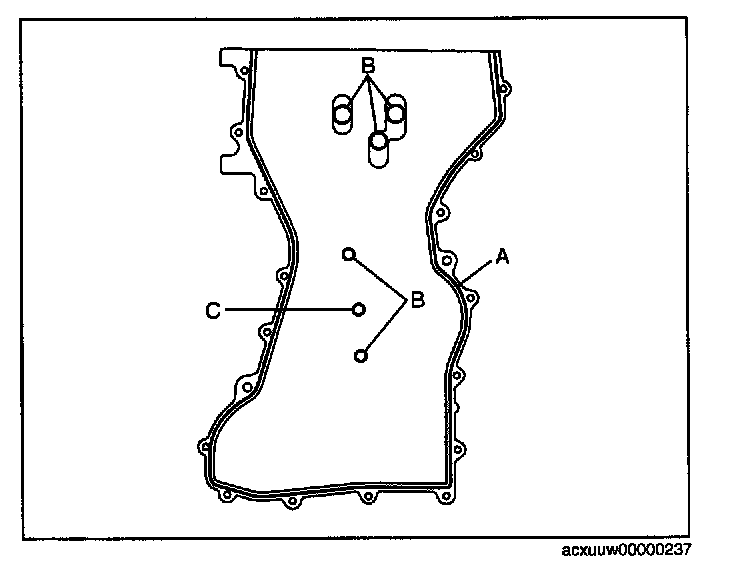 - Install the engine front cover within 10 min of applying the silicone sealant.