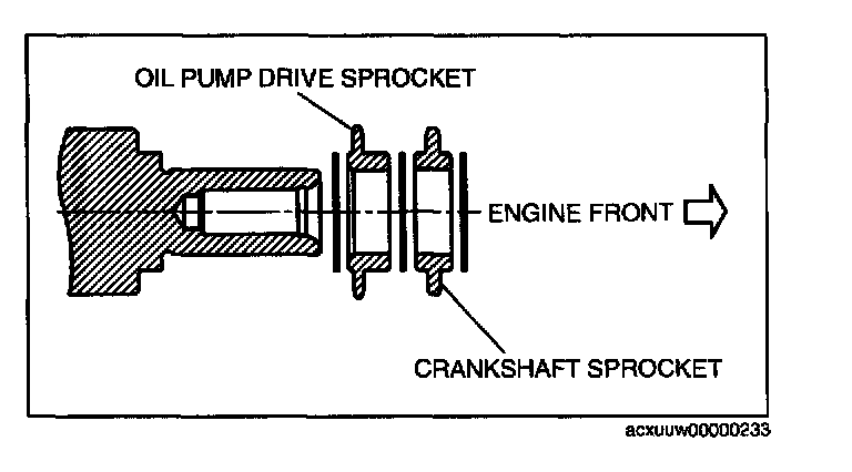 1. The oil pump drive sprocket has the assembly direction as shown in the figure.
