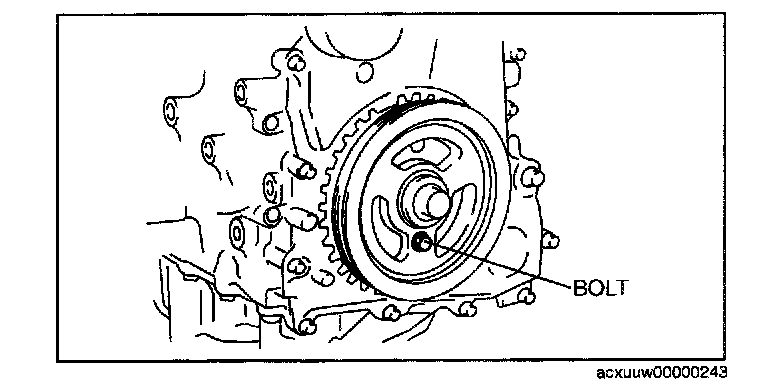 5. Remove the bolt (M6 X 1.0 length 25 - 35 mm (0.99 - 1.3 in)) installed to the crankshaft pulley.