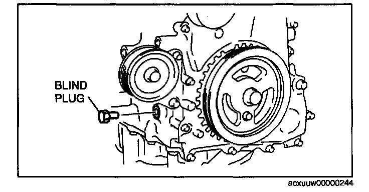 1. Rotate the crankshaft in the direction of the engine rotation and remove the cylinder block lower blind plug when the No. 1 cylinder is at the point prior to top dead center (TDC) of compression, then install the SST.