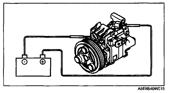 MAGNETIC CLUTCH INSPECTION[L3 WITH TC]1. Connect battery positive voltage to terminal A of magnetic clutch and ground to A/C compressor body.