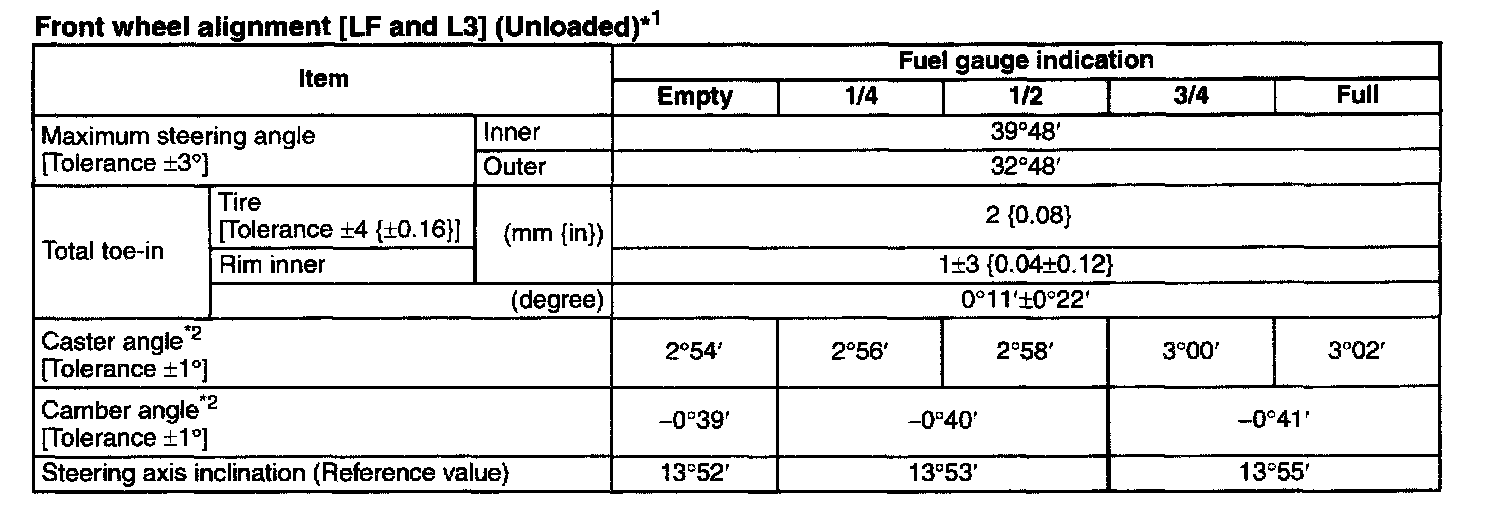 Front Wheel Alignment [LF And L3] (Unloaded) *1: