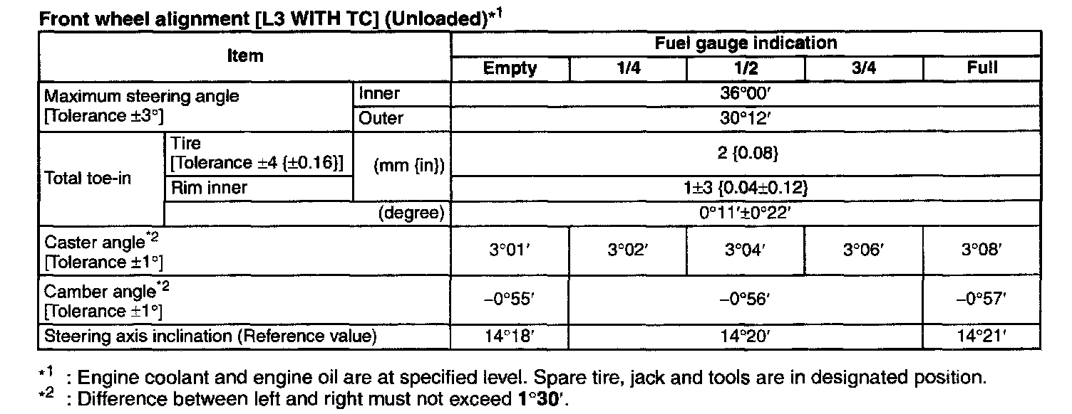 Front Wheel Alignment [L3 With TC] (Unloaded) *1: