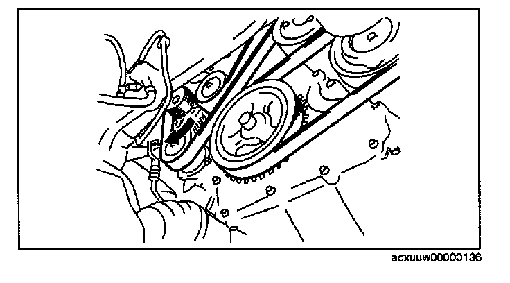2. Rotate the drive belt auto tensioner in the direction shown in the figure and remove the drive belt.