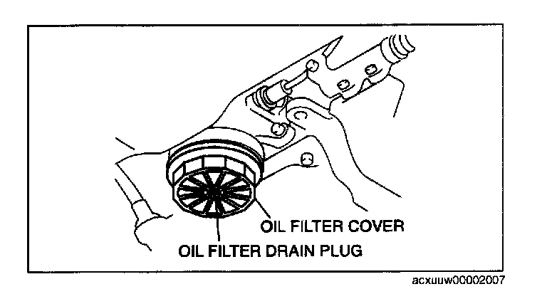 4. Remove the oil filter drain plug, and drain the engine oil.